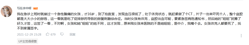 當時女孩有休克,盆腔出血可能,要緊急籤病危通知書,然後她的“姐姐”猶豫了好久才籤,這簽了一看,不對啊,女孩和她“姐姐”的姓不同,這才發現,原來陪女孩來醫院的不是她姐姐,是中介,我嘞個去。女孩休克人都要死了,找不到家屬簽字。