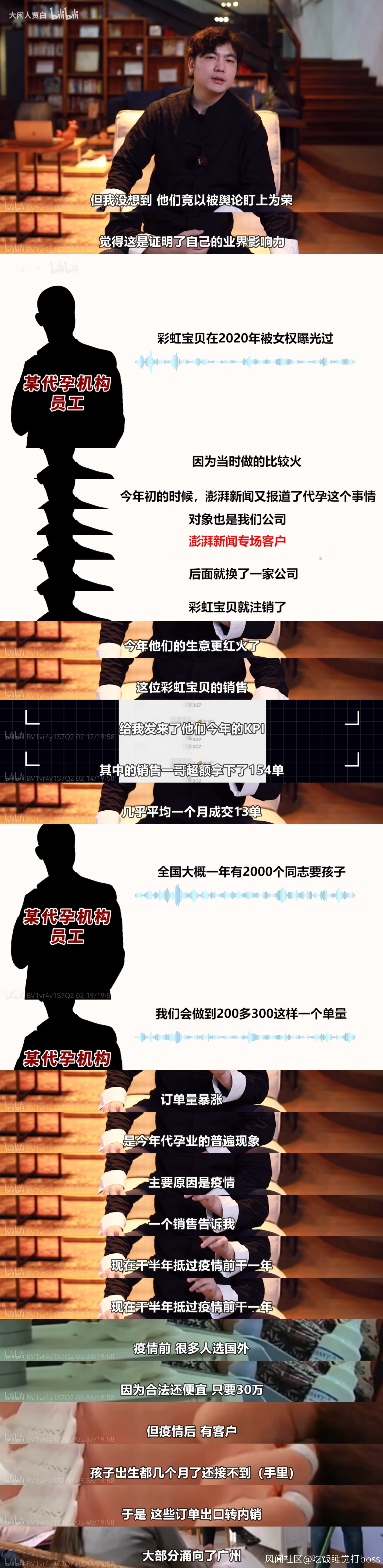 在b站首頁刷到一個“卧底代孕圈”的視頻,看完背後直髮涼:花85w包生男孩,HIV患者也可以代孕,而且據up主@大閒人賈白 估算,廣州能“年產”約2萬單。