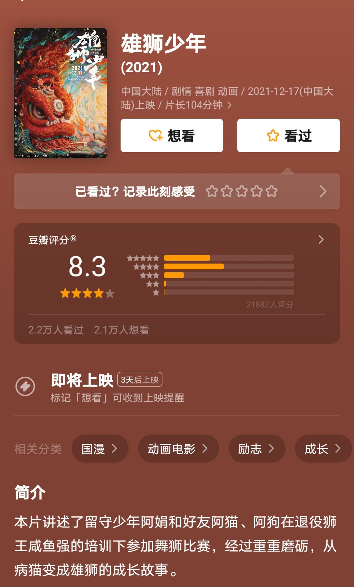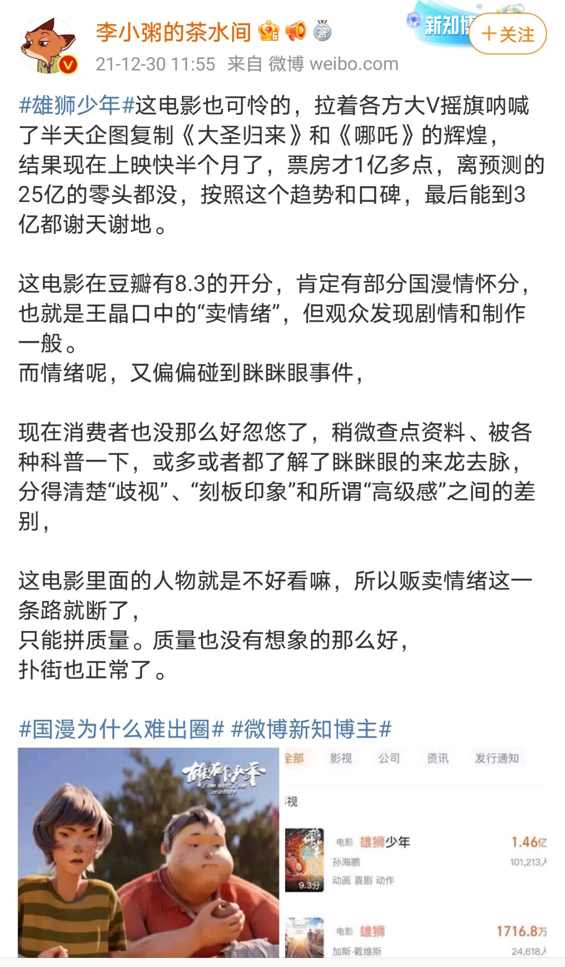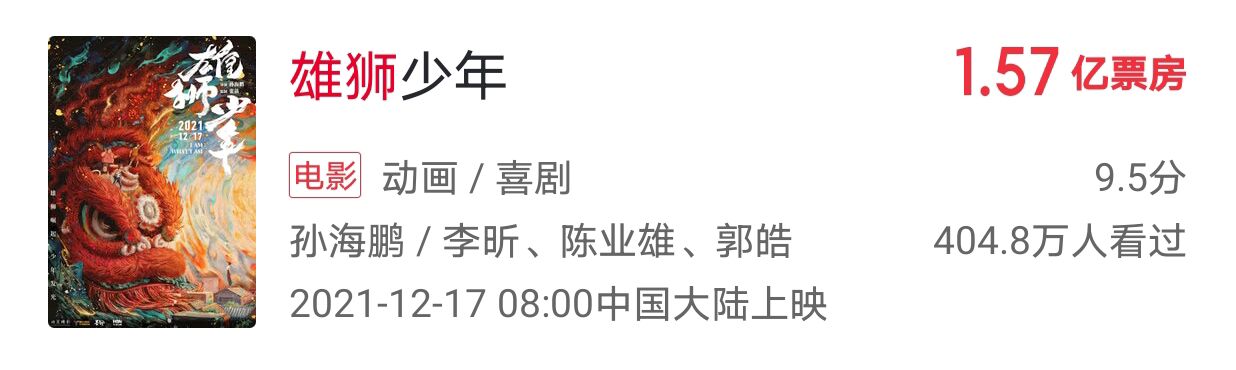 最近一段時間,有關《雄獅少年》的各種討論在網上層出不窮,所有人都對這個豆瓣開分8.3,然而實際票房連一億都不到的影片感到失望。