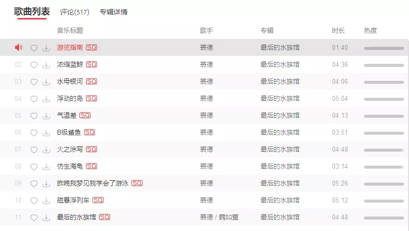 你會發現,歌名都攜帶“水”字,與專輯介紹形成了呼應: