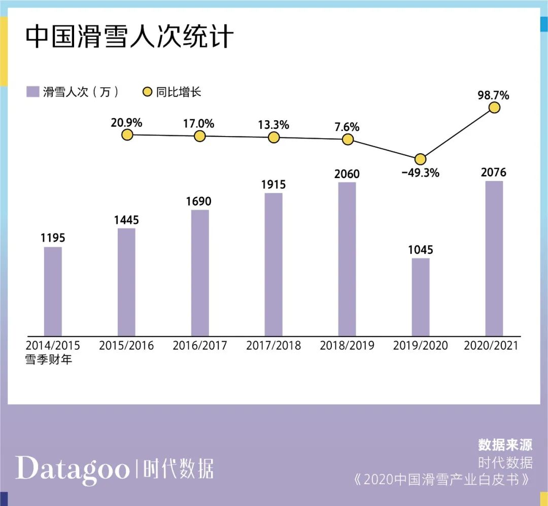 據統計,2018/2019 雪季財年的滑雪人次就已突破 2000 萬人次,受到疫情重創,2019/2020 雪季財年的滑雪人次大幅下降,而 2020/2021 雪季財年為 2076 萬人次,相比 2018/2019 年度的 2060 萬,增長 0.78% ,已恢復並超越疫前水平。