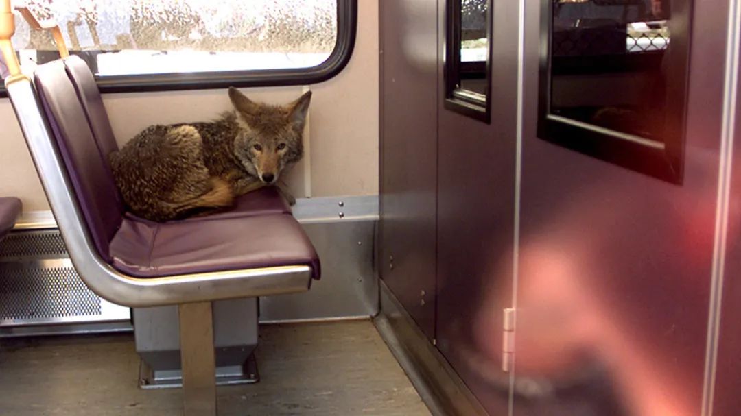 2002年被拍到在美國俄勒岡州波特蘭市搭乘輕軌的郊狼,這隻目測逃票了。圖片來源:Dennis Maxwell/AP