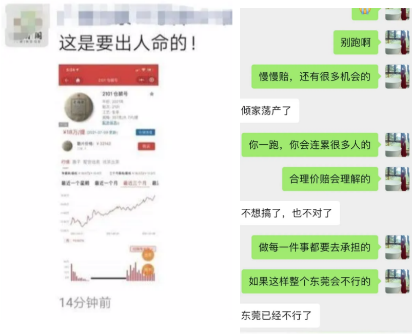 有人在朋友圈宣佈將關機、跑路,有人發出截圖,“準備喝農藥”,有人表示上家跑路,盡力對單,但過手100件空單,已經虧損百萬。