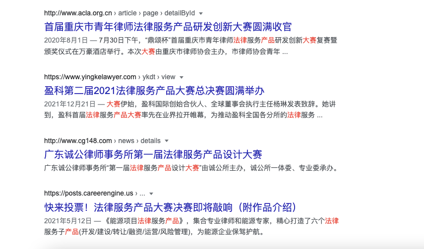 搜索關鍵詞,出現了許多法律產品大賽的新聞