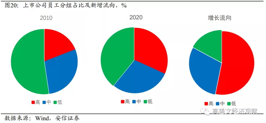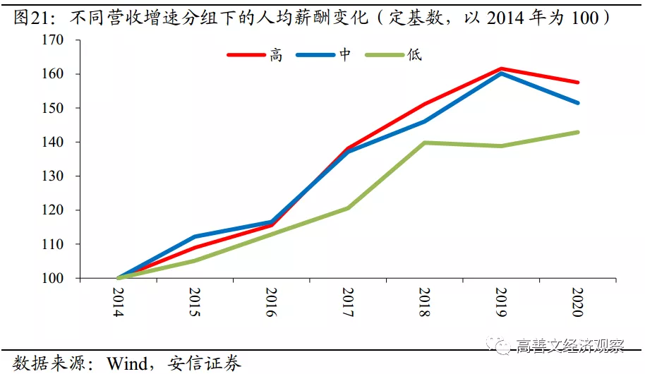 **從人均工資的角度來看,**如圖21所示,高增長組的人均薪酬增速也在近幾年領先於中、低增長組。