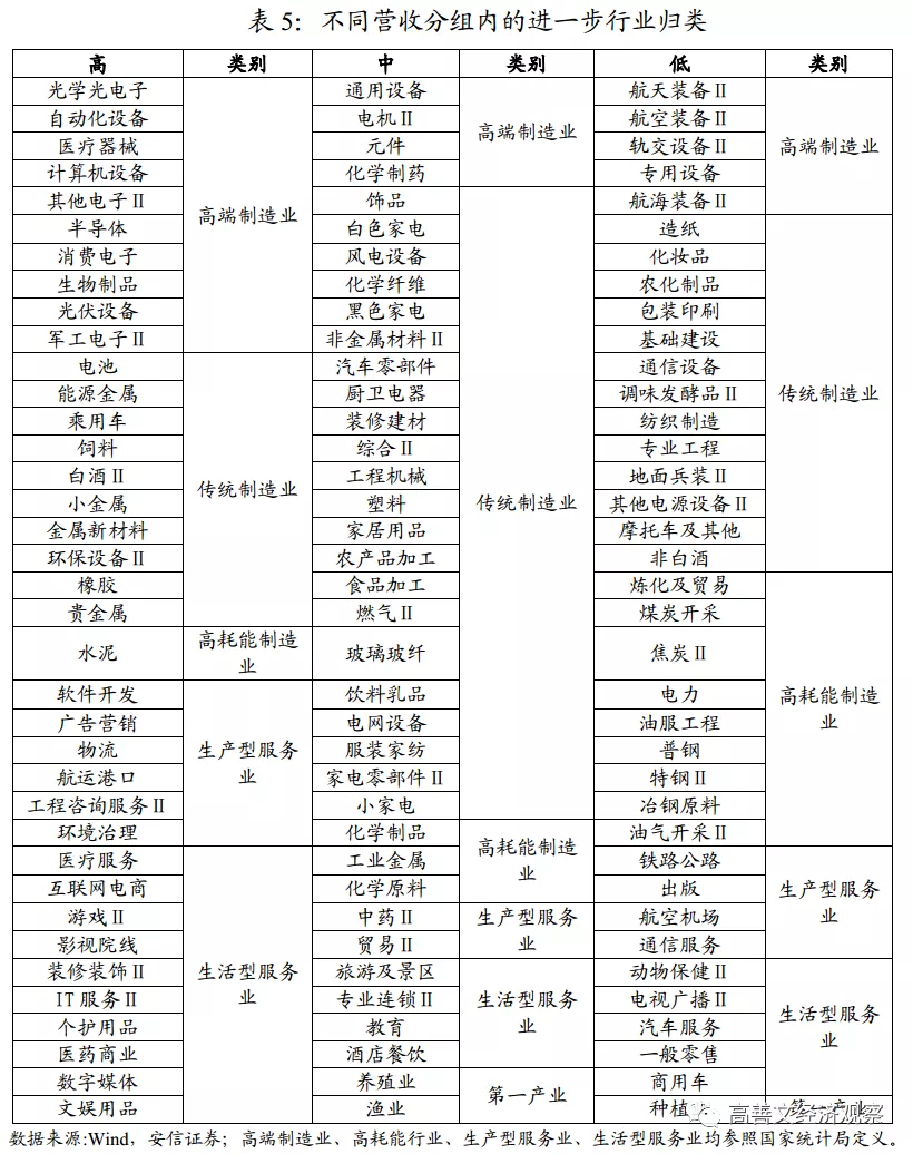 **第二,**在高增長組中,就製造業的構成而言,大部分是高端製造業,而中低增長組裏高端製造業的佔比相對較小。這一特徵應該是符合預期和容易理解的。