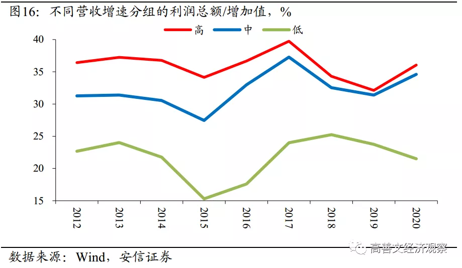 **其次,****從利潤/增加值(即利潤佔比)的角度看,**如圖16所示,高增長組總體上的利潤率要高得多,中增長組次之,低增長組相對較低。
