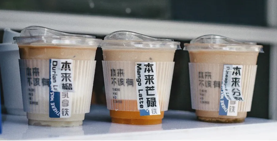 表達也很有趣,門口標牌寫着**“咖啡哪有上班苦”,產品名叫“本來榴戀”、“本來不柑”、“本來油泥”**(牛油果厚乳拿鐵)。