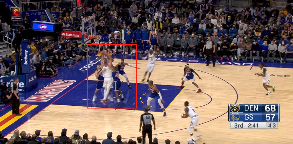 如此一來,約老師的個人進攻和傳球都被限制住了。掘金的進攻完全是約老師一個人撐起來的,約老師被摁住,掘金的進攻自然就開始斷電,只能靠角色球員們零敲碎打。