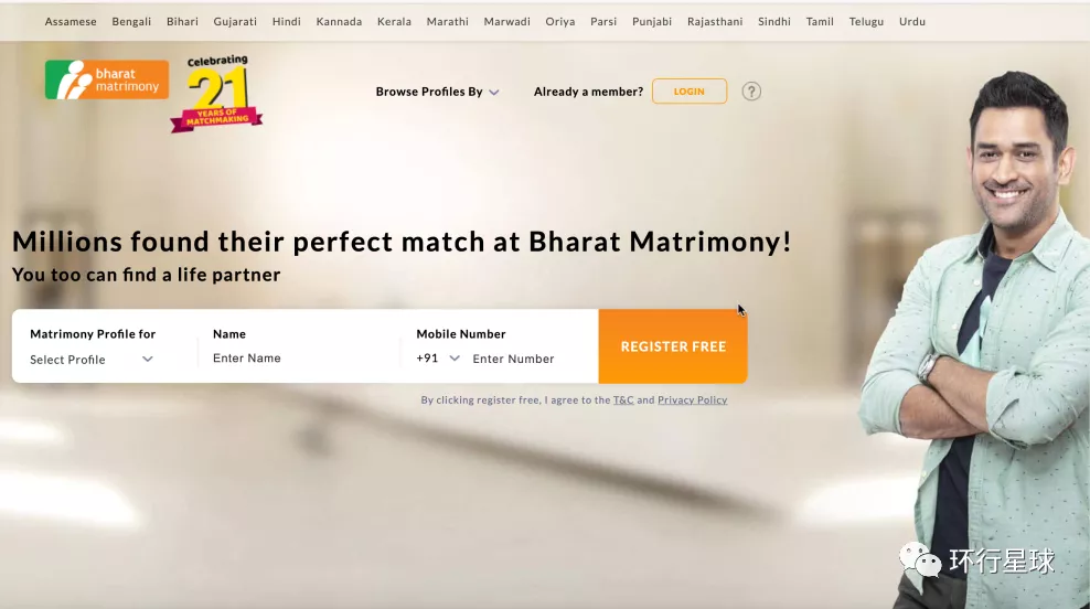 印度相親網站Bharat Matrimony網站首頁