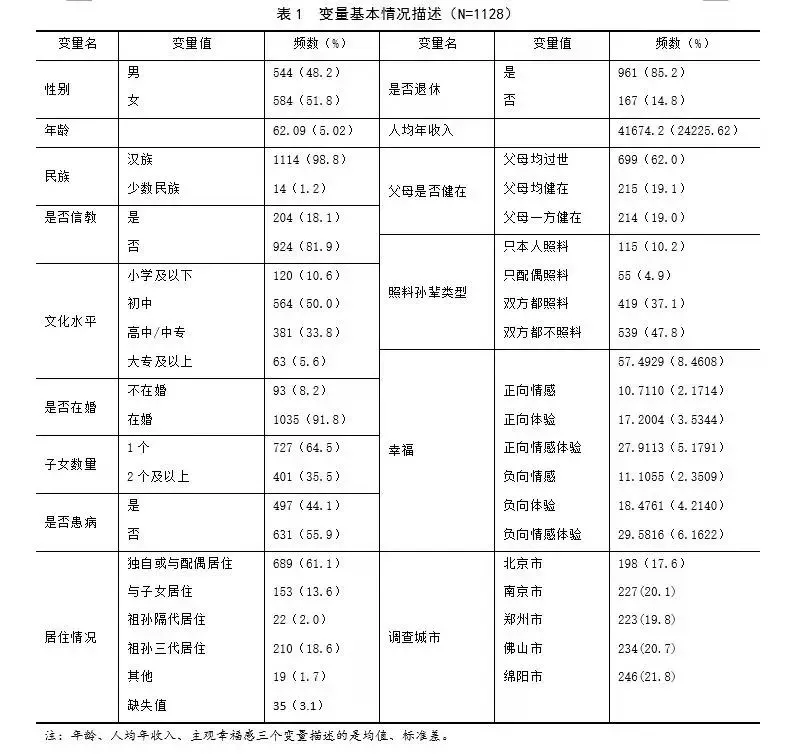 上述調查的時間跨度近三十年,但調查數據顯示祖父母照料孫輩現象並未減弱。該研究基於對北京、南京、鄭州、佛山、綿陽五個城市1128名祖父母的問卷調查數據,研究照料孫輩對祖父母的幸福度的影響這一問題。