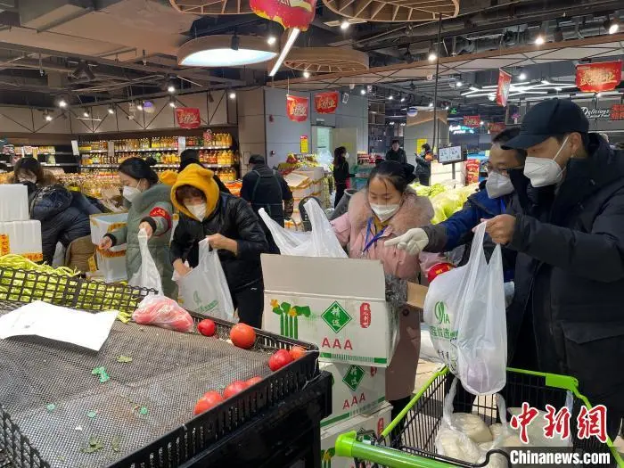 **28日20時,西安市新城區九個街道辦事處和城棚改事務中心開始為轄區居民免費發放蔬菜。**街道、社區工作人員通過在菜市場、超市等渠道購買蔬菜後,打包給居民送到手中。