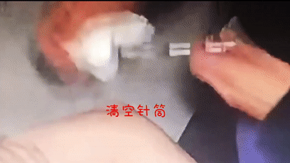 根據監控畫面顯示,一位護士在注射疫苗之前,先把針管內的液體排空,然後把沒有疫苗的空針管紮在接種者的胳膊上。