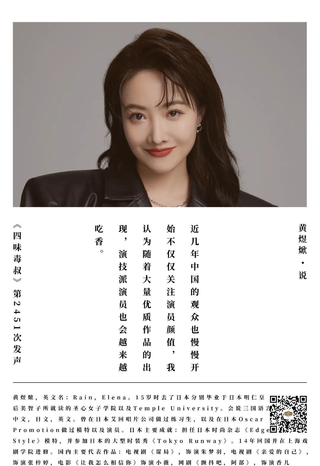 Hello,大家好,我是演員黃煜焮,我原本的名字叫黃玥程,最近剛改了個名,煜焮有點難記,希望大家可以多多包涵記住一下。上次我有在《四味毒叔》説到我在日本度過了高中和大學生活,今天就跟大家聊一下我印象深刻的日本女演員和現在日本明星片酬偏低的現象。