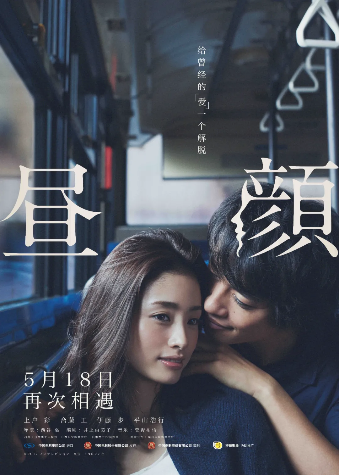 記得去年在家看了電影《晝顏》,我發現這幾年上户彩的演技更加成熟、細膩、有韻味。雖然這部電影講的是婚外情的故事,但沒什麼轟轟烈烈的場面,整個的拍片的手法都非常唯美內斂。上户彩扮演的紗和在細膩中的表演中緩緩地體現了出她人物的內心的點滴變化,她細膩生動地展現了一位追求真愛的離異少婦進退兩難那種煎熬、矛盾的心路歷程。