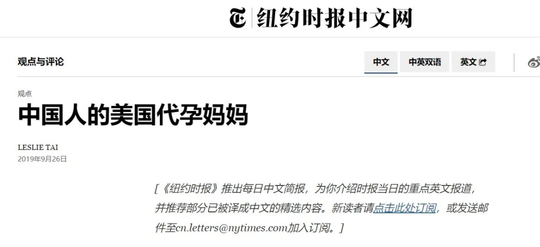 代孕這種破事,這看誰來講,我國肯定是反對的。這也看國家,紐約時報曾經搞過一篇文章,文章提到這麼一個事情: