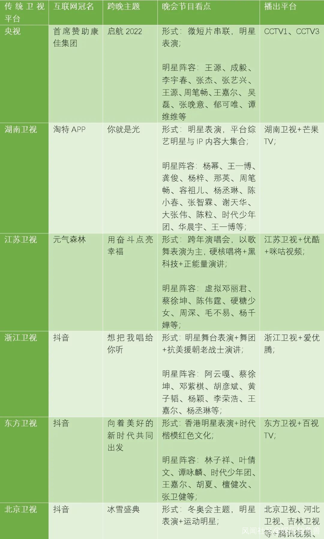 今天是2021年的最後一天,據不完全統計,從湖南衞視、江蘇衞視等傳統衞視,到B站、騰訊視頻等互聯網內容平台,內容市場上已經累計出現了13檔跨年晚會/活動。