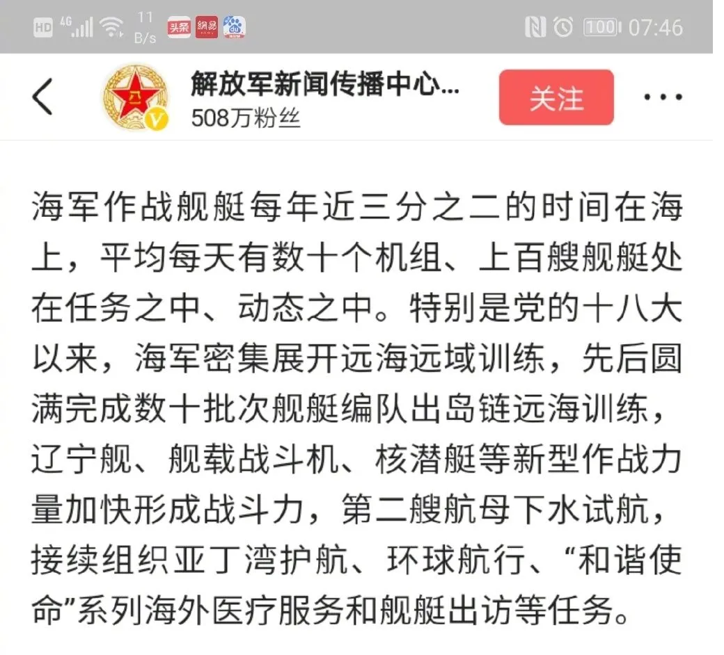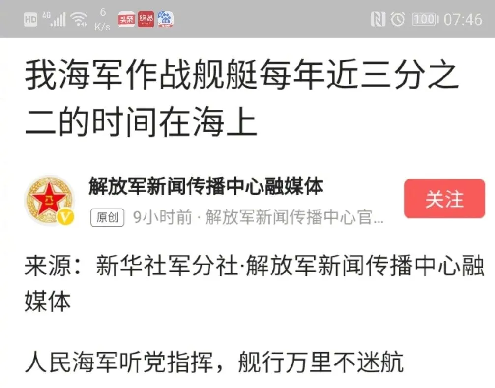 中國海軍在2000年至2008年之間,主力艦船的年航行里程2萬海里,年均出海100多天,與歐洲國家海軍大體相當。2015年以後年均出海150~200天,達到4至5萬海里,年平均出海航行里程4萬海里以上,達到世界超級海軍強國——美國海軍的水平。