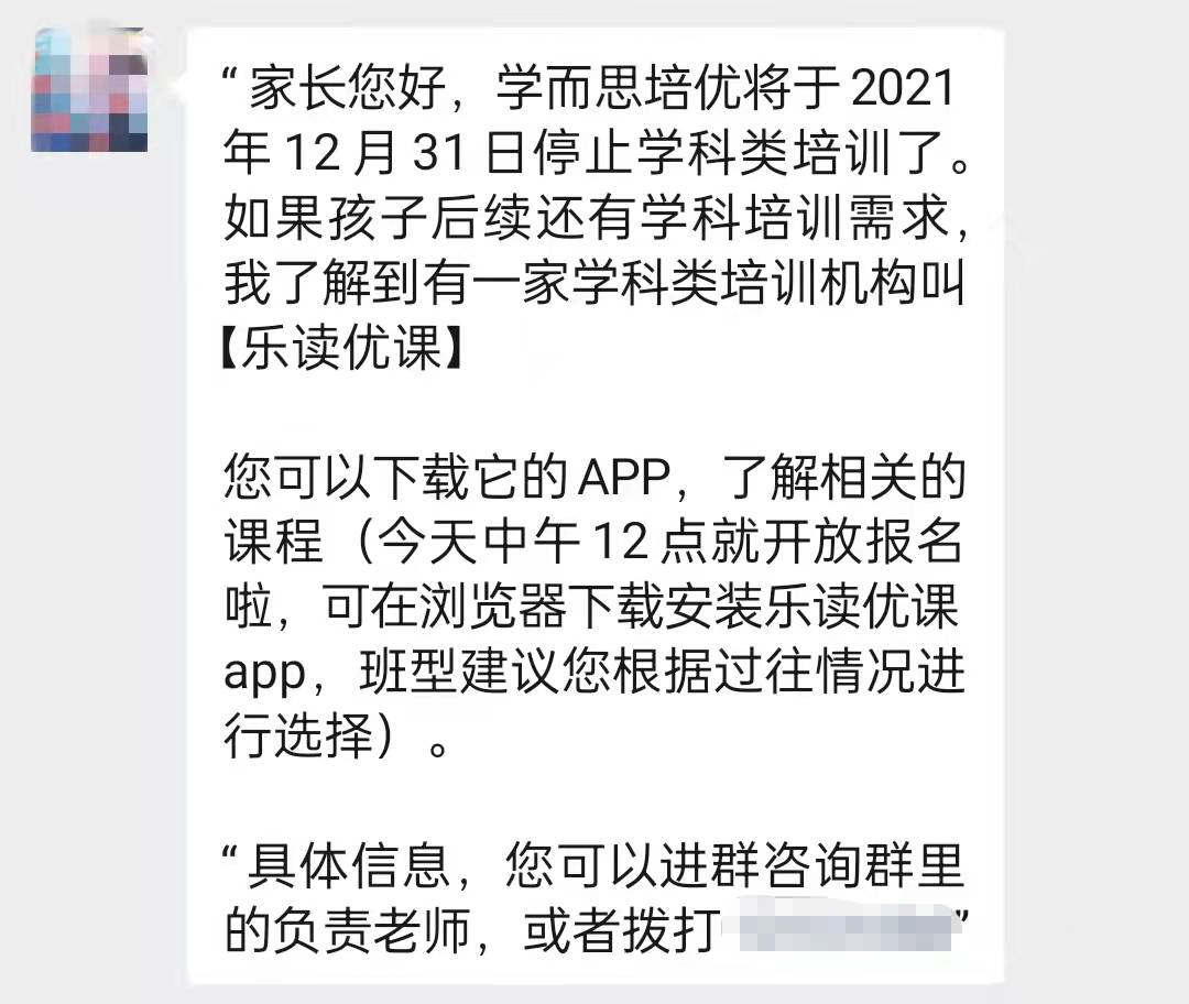 12月29日,樂讀優課在其官方微信公眾號發佈致家長的一封信。信中,樂讀優課介紹自己為一家“持證上崗”的中小學學科輔導機構,擁有教育主管部門頒發的非營利性義務教育階段學科培訓辦學許可證,將於2022年1月起,為中小學生提供包括語數英等科目在內的在線直播課程與服務。
