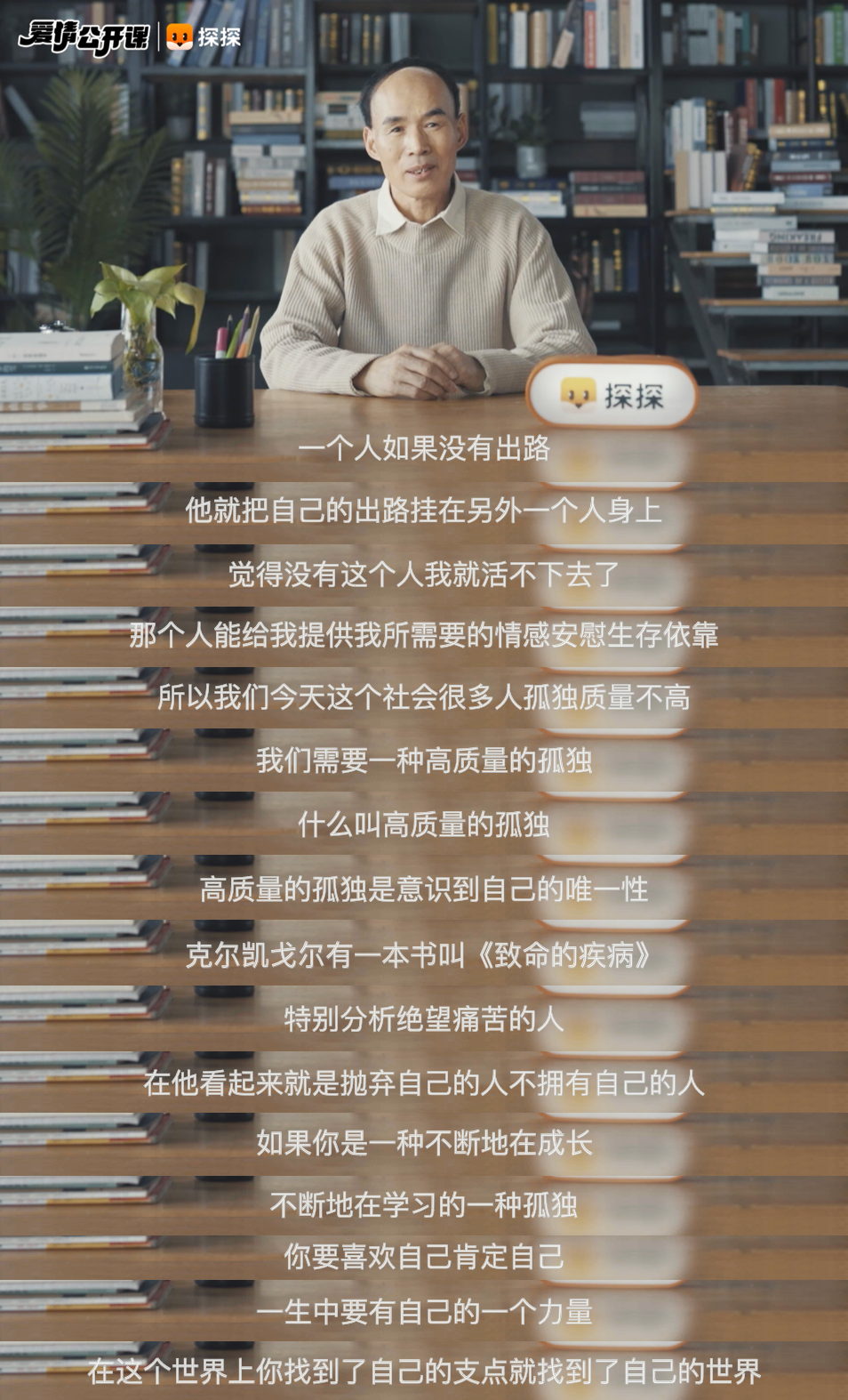 探探愛情公開課,還會繼續邀請各領域對情感有見解、經歷的學者、專家,分享自己的觀點、經歷,這裏不會有教該怎麼做的標準答案,但會有一幅關於愛情,甚至關於更多生活問題的全景圖。