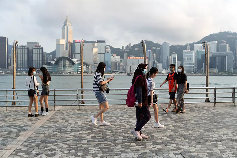 2021年4月2日,戴口罩出行的香港市民。圖|新華社