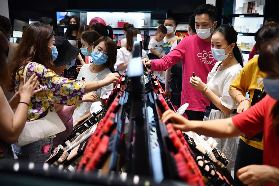 2020年10月15日,遊客在海南三亞國際免税城購物。圖|新華社