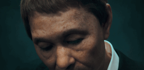 再忽然攤手,感覺下一秒畫外就有小弟給他遞上一把槍。