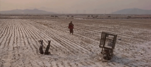 金基德的《收件人不詳》裏,主人公逃亡路上飆摩托車時,突然一頭扎入了泥水地裏,生命永遠地凍結在了冰天雪地裏。