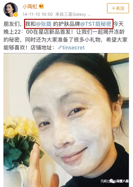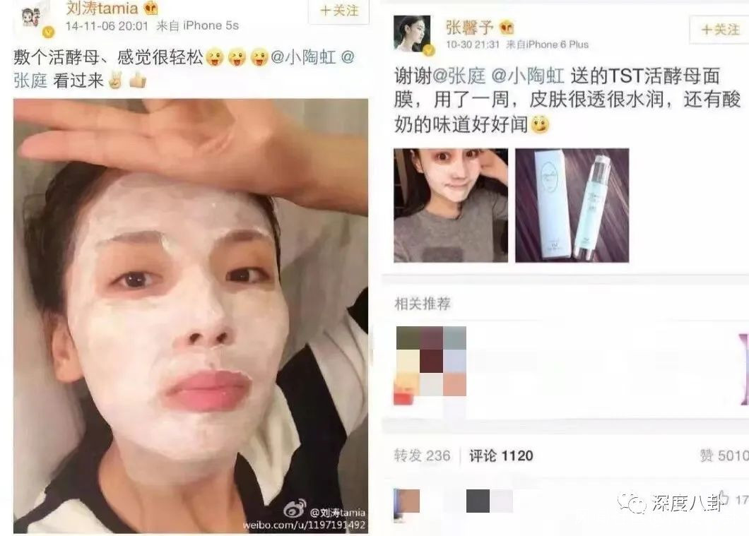 此前,劉濤、張馨予等女星為該款面膜宣傳時,艾特的也是張庭和陶虹。