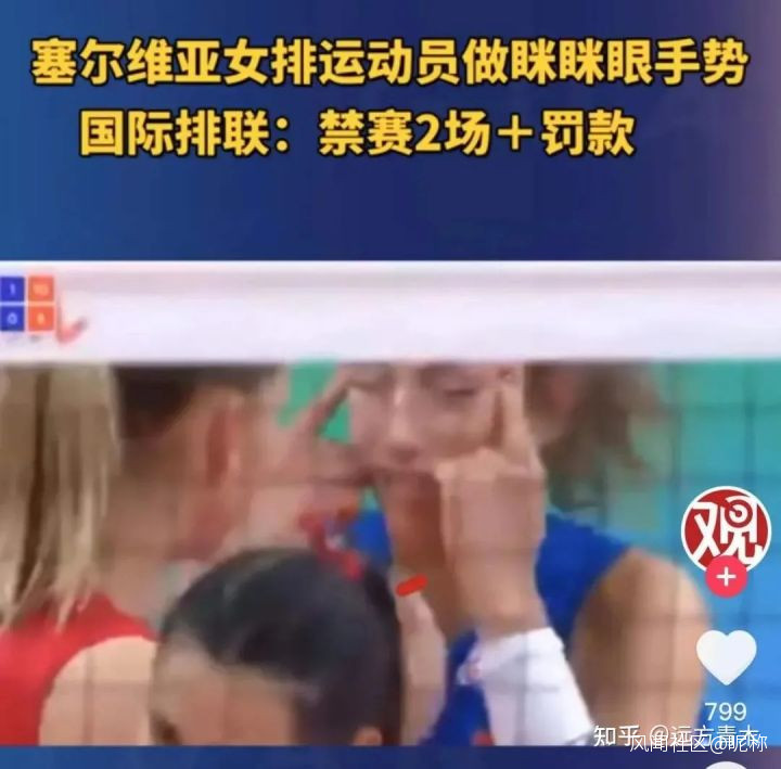 塞爾維亞的白種人女排球員在對陣泰國女排的時候,曾經故意拉眼角做斜眼造型,被判侮辱亞裔,禁賽+罰款。