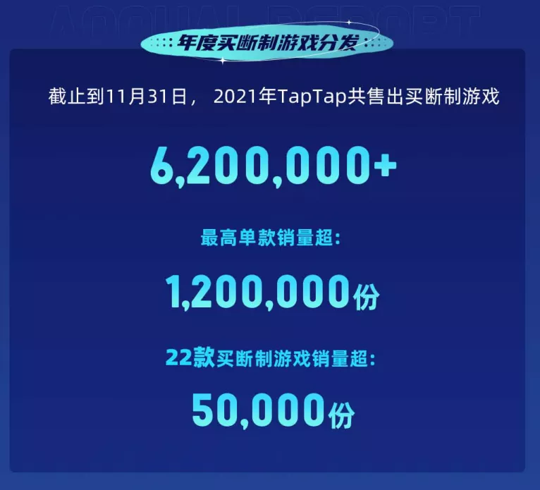 另外,這一羣體同樣與買斷制手遊有所契合。截至11月底,TapTap全年共售出買斷制遊戲620萬份,其中有百萬量級的買斷制手游出現,其銷量為120萬;總計22款買斷制遊戲銷量超過5萬。在免費手遊大行其道的國內市場,這是一個值得注意的成績。