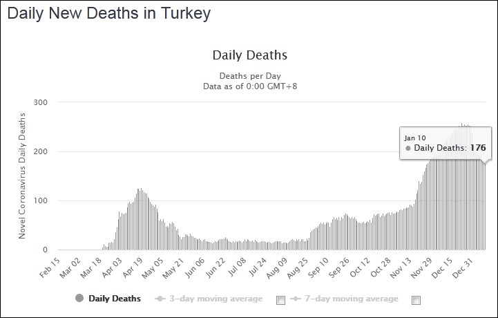 土耳其每日新增確診病例數和死亡病例數 圖表來源:Worldmeters