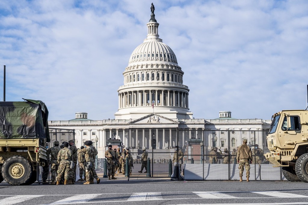 國民警衞隊在國會大廈附近嚴陣以待,圖自澎湃影像