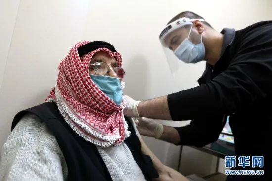 1月13日,在約旦首都安曼,一名男子接種新冠疫苗。圖自新華網。