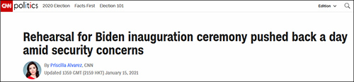“出於安全顧慮,拜登就職地典禮彩排推遲一天”,CNN報道截圖