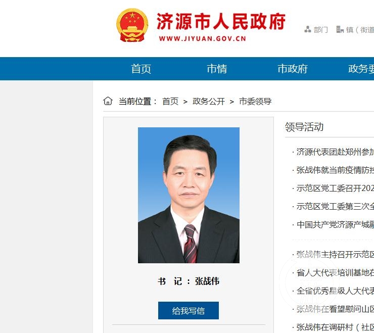河南濟源市委書記張戰偉被實名舉報“掌摑”該市政府秘書長,引發廣泛關注。圖片來源/濟源市政府官網