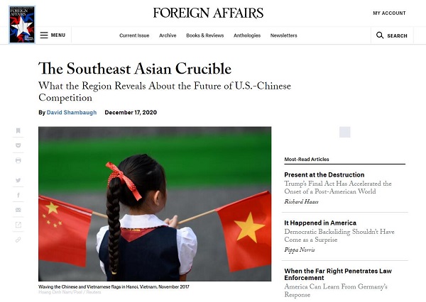 美國當選總統拜登及其即將就位的政府已開始制定戰略以應對日益激烈的中美競爭,他們應密切關注東南亞。美中較量正在全球範圍內展開,涉及外交、商業、安全、影響力運作、意識形態、價值觀、教育、科技等各功能領域。中美在東南亞展開的全方位競爭只是一個縮影和預兆,預示着這種競爭將在世界其它地方如何展開。這場競爭的結果至少會影響到廣袤的印太地區,而該地區的國際地位已變得越來越重要。