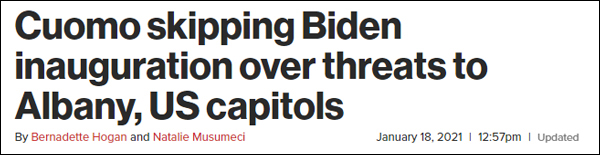 紐約州長取消出席拜登就職典禮計劃:鑑於社會治安,我還是留在紐約州吧