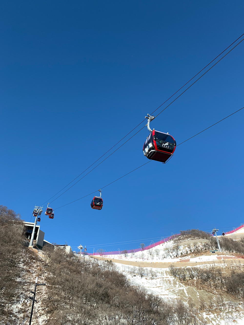 △索道系統由9條索道及2條牽引組成,全長10.3公里,賽時可確保運動員30分鐘內從冬奧村抵達各項目出發點。(總枱國廣記者李晉、央視記者石丞拍攝)