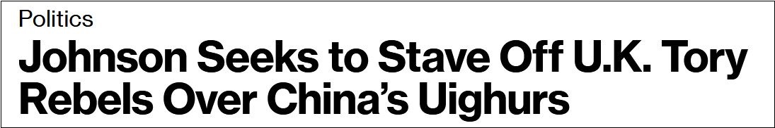 彭博社形容説,約翰遜“尋求有意避開”保守黨中反對議員在中國新疆問題上的態度
