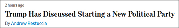 美媒:特朗普正與助手討論組建新政黨,名叫“愛國者黨”