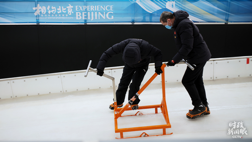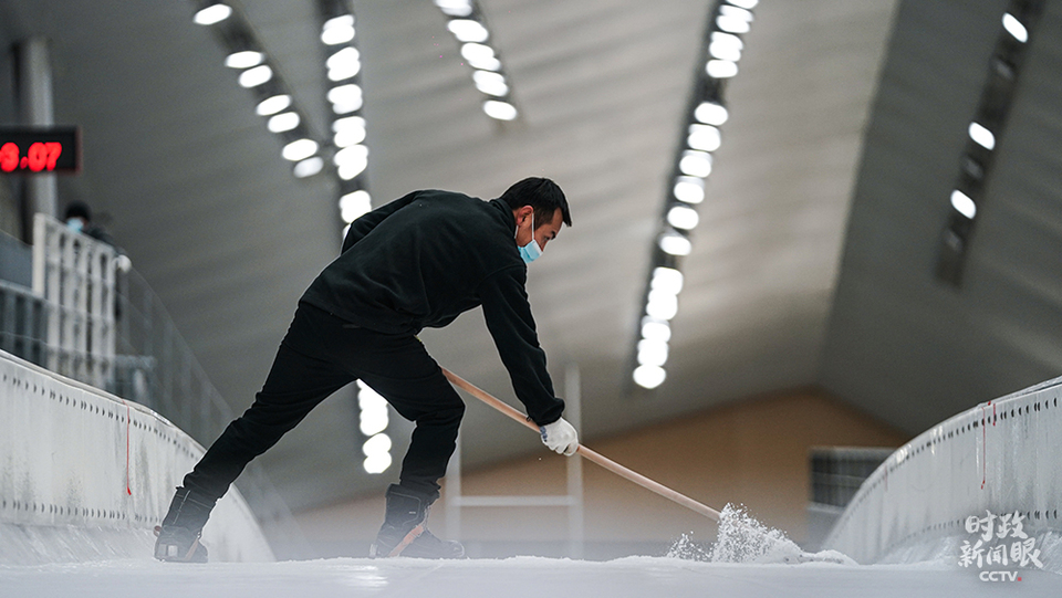 △國家雪車雪橇中心,製冰師對賽道冰面做精細修整。(總枱國廣記者李晉拍攝)