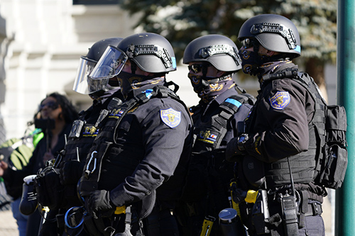 科羅拉多州巡警在州議會大樓外戒備,圖自:澎湃影像