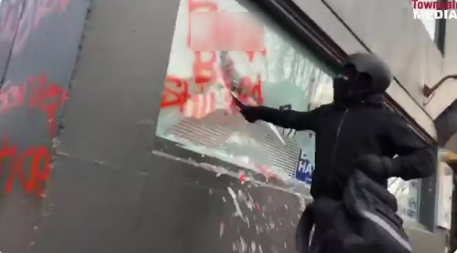 示威者破壞波特蘭市的民主黨總部,以上為視頻截圖