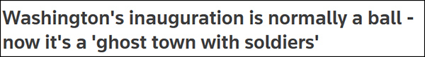 “華盛頓的就職典禮通常都是慶典,如今像是個‘有駐軍的鬼城’”,路透社19日報道截圖