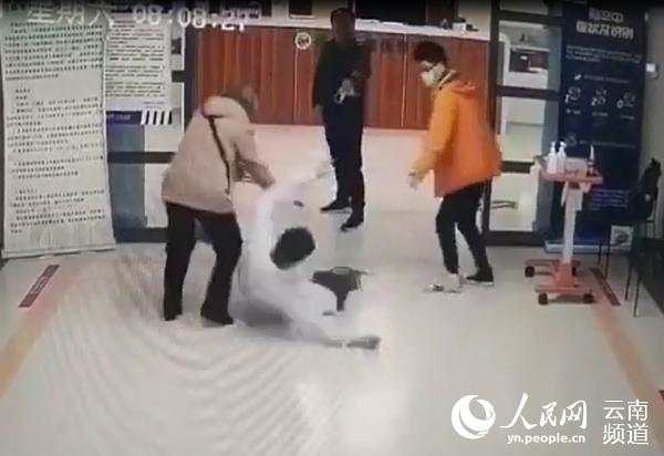 據悉,打人者為温某,其父親在雲南省第一人民醫院住院。因疫情防控規定,醫院要求病人家屬需持陪護證方能進入病房陪護。