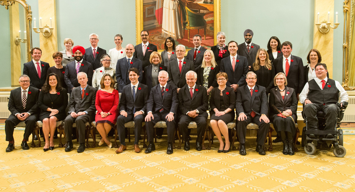 特魯多2015年組建的內閣,女性佔半數 圖自社交媒體