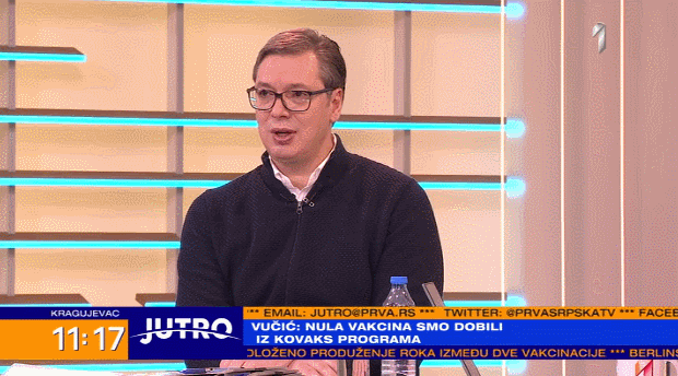 當地時間1月24日上午,武契奇做客塞爾維亞第一電視台(TV Prva)“第一天清晨”(Jutro na prvoj)節目,接受了一個小時的採訪。