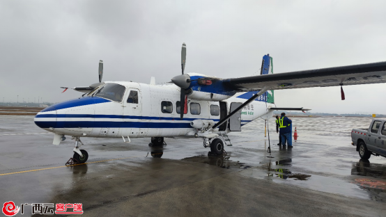 廣西開展人工增雨促進冬季農業生產,圖為正在進行飛機增雨準備工作。 圖|廣西雲客户端