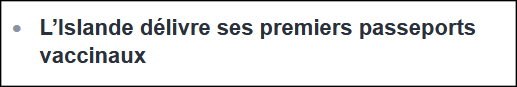 “冰島簽發首個‘疫苗護照’”,《世界報》報道截圖